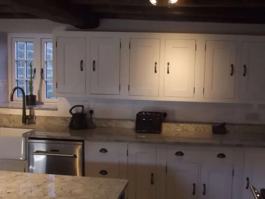 Once all the cabinets were fitted, it was time to paint them. This is another part of my job as a cabinet maker that I enjoy as you get to see the finished project. I started off by knotting the Redwood where seen so the knots didn't bleed through then I gave it 2 coats of primer undercoat sanded between coats then 2 top coats of eggshell paint. I'm really happy with the results, and Colin and Jane are delighted with their new kitchen!