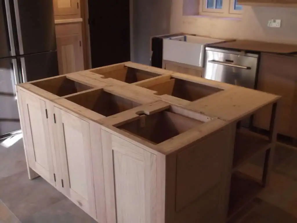 We discussed in detail what Colin and Jane envisaged their new kitchen to be like. Jane said she'd always wanted an island but that she wasn't happy with the standard height of those she'd viewed in the past. Because all my work is bespoke, I make every individual unit to the exact measurements needed for the room it'll be in - or in this case - the height Colin and Jane wanted the island to be which wasn't a standard unit height.